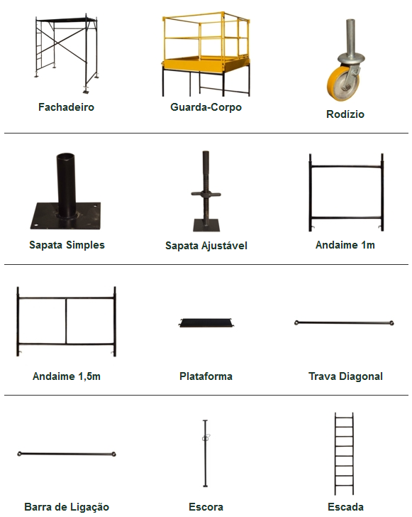 Produtos Nossos produtos são feitos sob medida, sempre mantendo a máxima qualidade. Nossa linha de produtos se compõe de: - Andaimes tubolares .